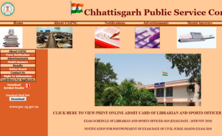 The Admit card for Librarian and Sports Officer Exam 2019 has been released by the Chhattisgarh Public Service Commission (CGPSC). Candidates appearing in this exam can download their admit card from the official website of CGPSC.
