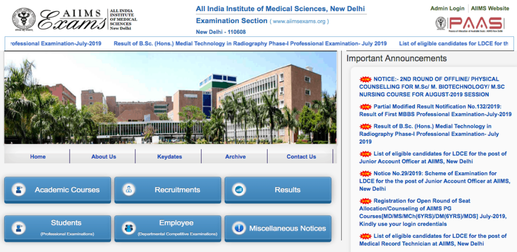 - Go to the official website of All India Institute of Medical Sciences at aiimsexams.org.