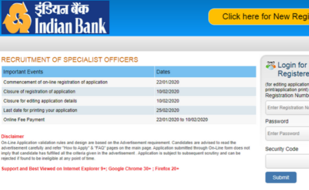 The online application link will be deactivated on 10th February 2020. Thereafter, no new applications will be accepted under the Indian Bank Specialist Officer Recruitment 2020. The last date for the payment of the examination fee is 10th February 2020.