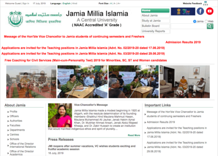 Jamia Millia Islamia had announced 64 vacancies for teaching positions including Assistant Professors and Research