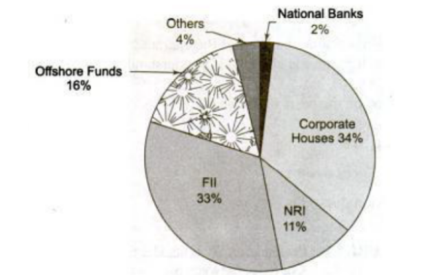 Sol : Investments other than NRI and corporate houses is 33% = 335000. Investment by offshore funds and NRI is 27%