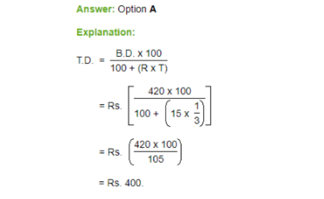 Q 5. The banker’s discount on a bill due 4 months hence at 15% is Rs. 420. The true discount is: