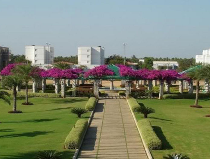 A green, eco-friendly campus with landscaped gardens