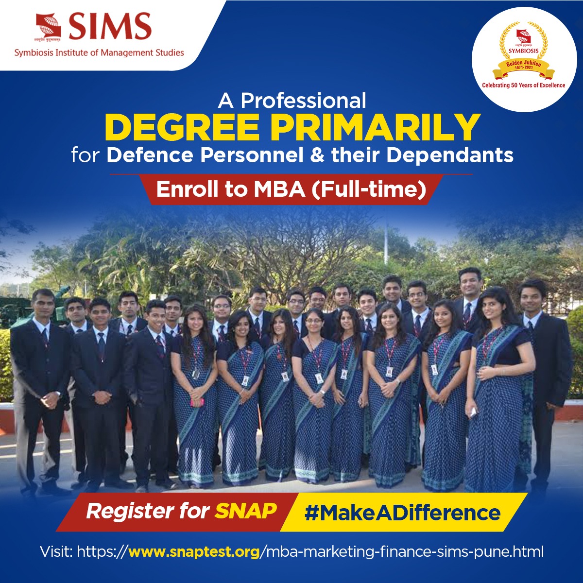 SIMS is a constituent of the prestigious Symbiosis International University and is the only MBA institute of its kind in India and a shining example of PPP (Public Private Partnership) between Symbiosis and Government of India – Ministry of Defence since 2002.