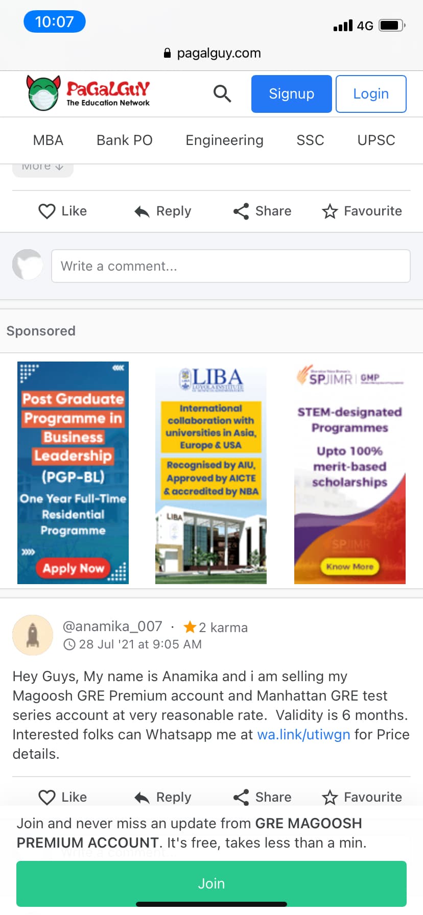 In-Feed Ads at the center between posts (1st ad - after 2nd post, repeated after every 5 posts. Example screenshot below.