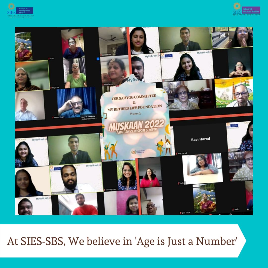 At SIES College of Management Studies, We celebrated the amalgamation of wisdom and youth in a cultural event named ‘Muskaan’. This initiative was taken by CSR Sahyog, a very active, student driven committee to bridge the gap between elder citizens and younger generation.