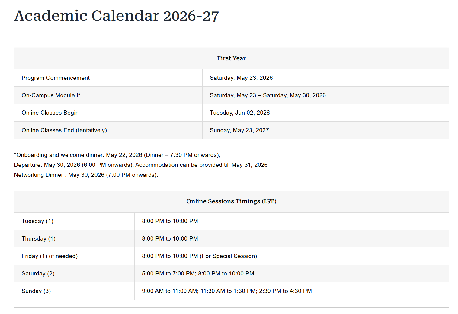 We have designed the program for the working professional only we do have 2 on campus modules